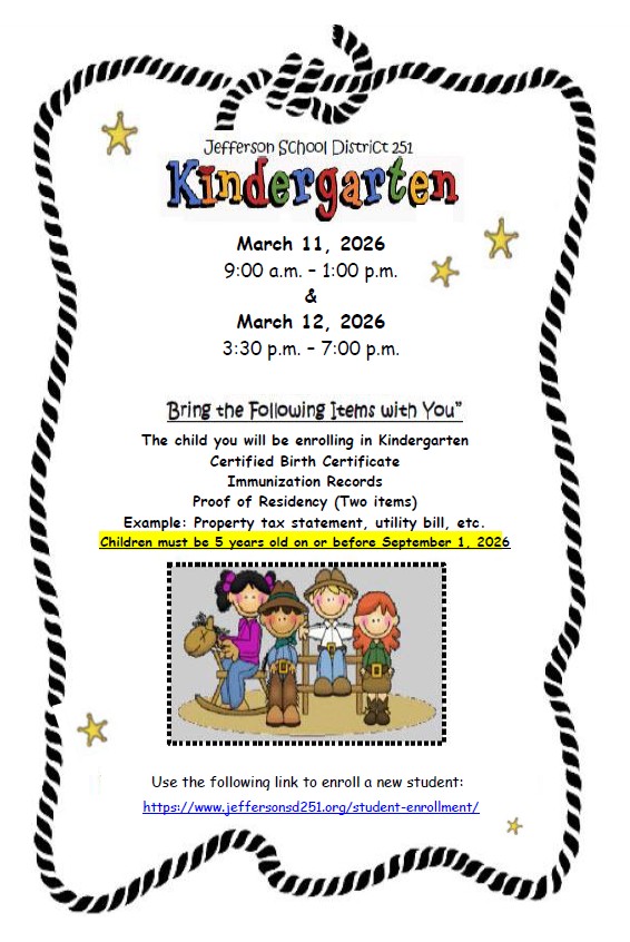 Popular LinksHome Bell-Recess-Lunch Schedule Contact Information Favorite Links New Student Enrollment PowerSchool Parent PTO Safety and Health Protocols School Lunch Account School Calendar School Supply List 2025-26 School report card STOP IT! Student Handbook Transportation Wellness Program District LinksContact District District Home Employment Opportunities Jefferson Education Foundation JSD 251 Mobile App School Boundary Map